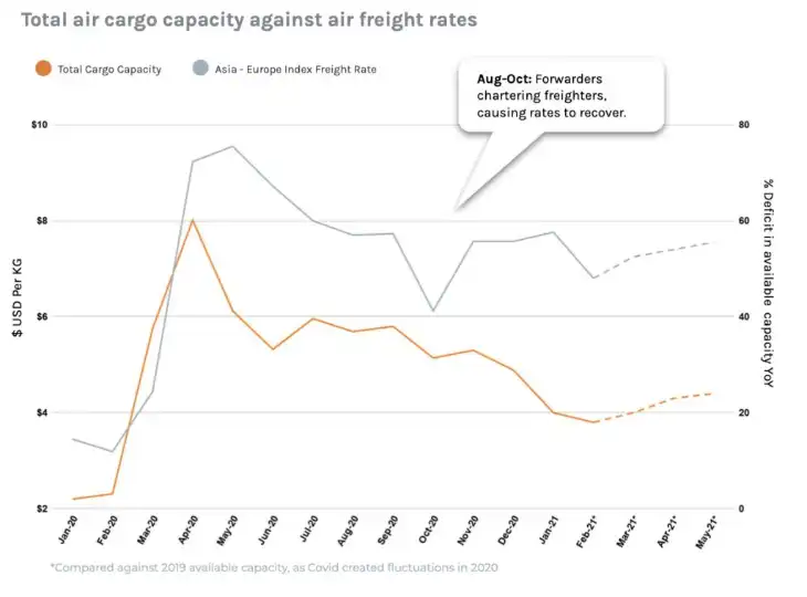 With air freight capacity reductions in H2 2020, demand exceeded supply on the Far East to Europe trade lane