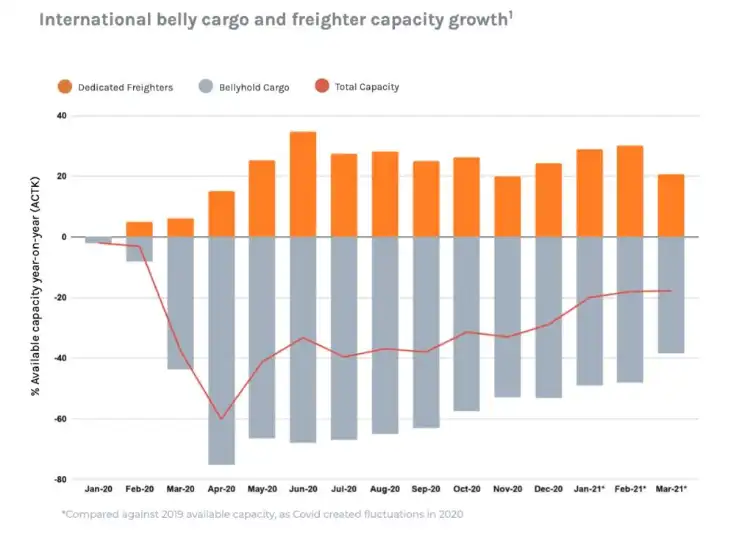 - Increasing demand & limited capacity:A change in consumer behaviour, and passenger demand will drive the capacity-demand imbalance further. Increased online shopping caused by Covid restrictions have resulted in customer expectations for faster delivery times. As a result, competing demands alongside an expected long-term change in passenger travel1 (less business travel), will constrain capacity.