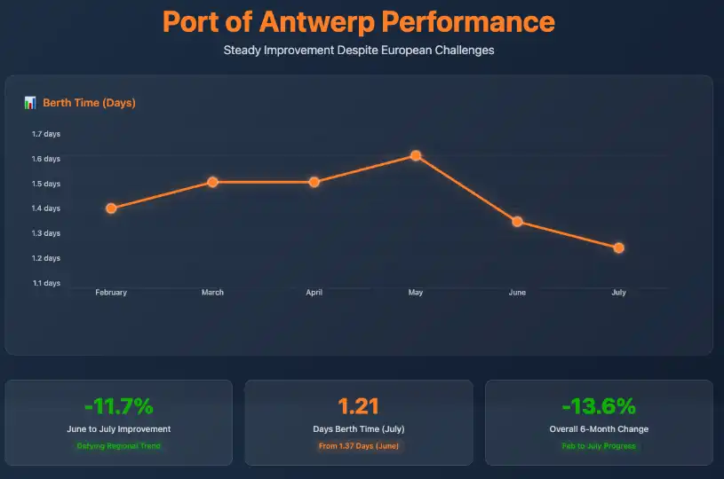 These technological investments are helping ports maintain more consistent operations and may partially explain why some facilities achieved improved berth times despite broader market challenges in July 2025.